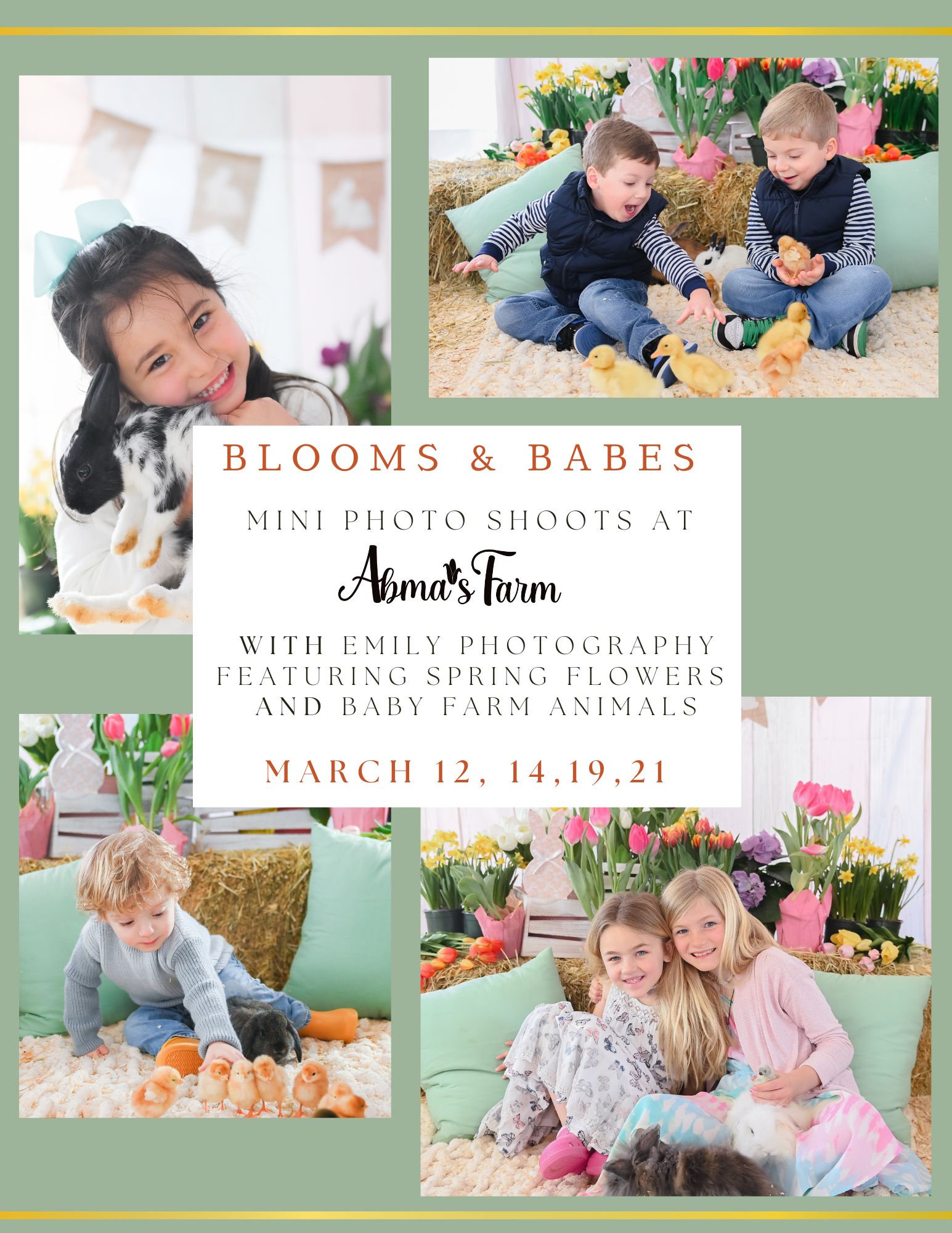Photography by Emily Photography ensures each moment is beautifully captured, from sweet snuggles with baby animals to candid smiles and laughter. This is a perfect opportunity to celebrate spring, nature, and the simple joy of being together.
