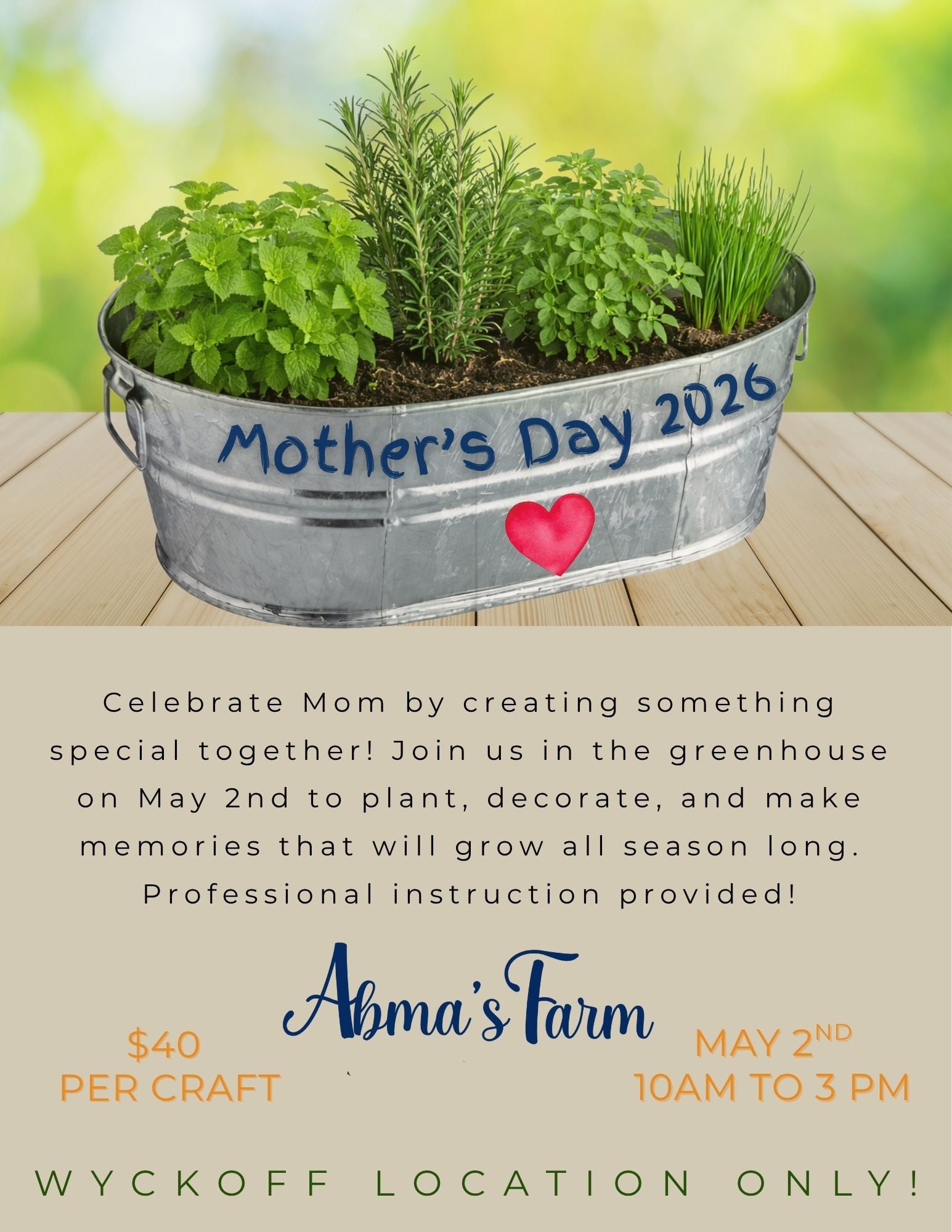 Celebrate Mother’s Day with a special Mommy & Me workshop on May 2nd in our greenhouse at Abma’s Farm!