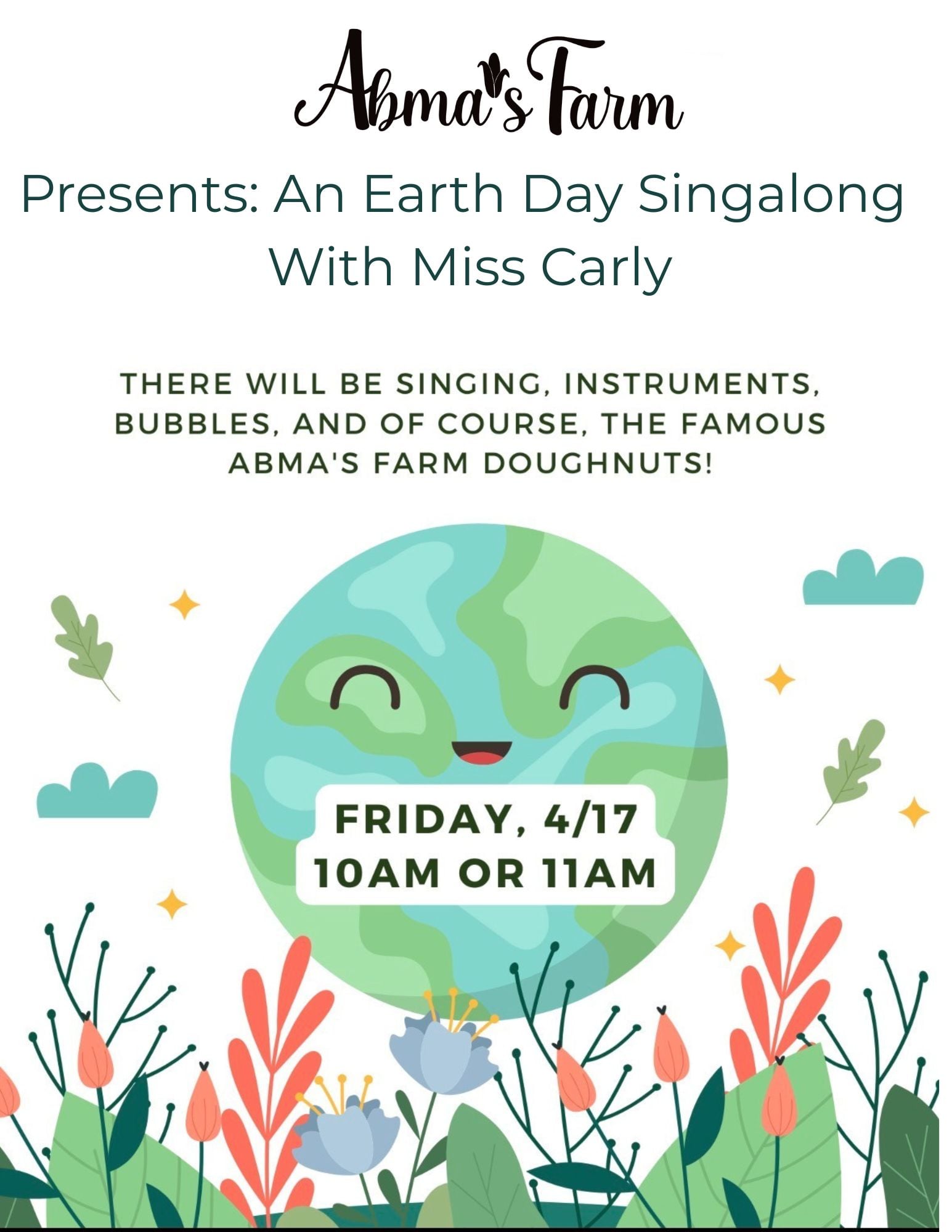 Celebrate Earth Day with us for a fun filled sing-a-long with Miss Carly!