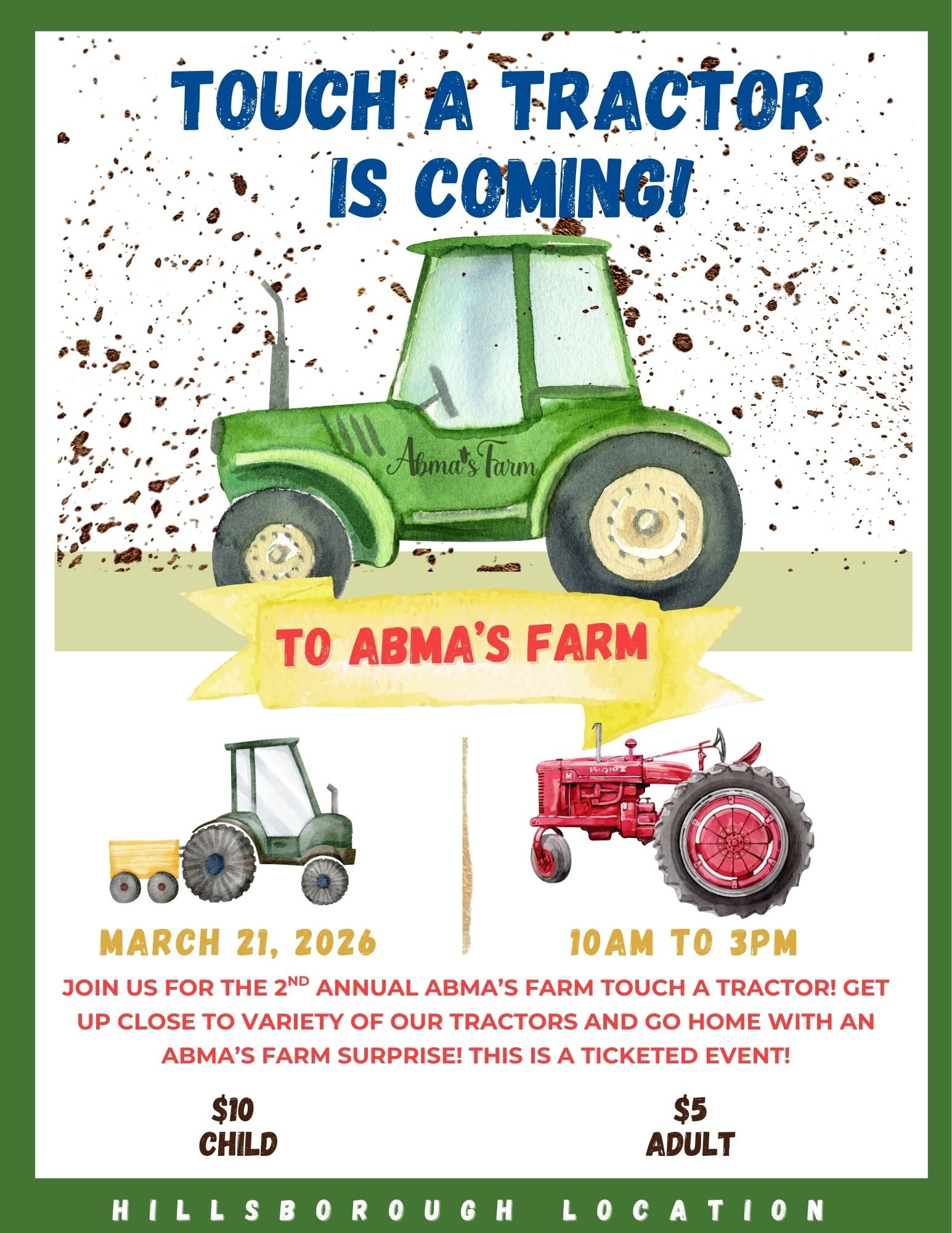 Rev up those engines and cruise on over to the 2nd Annual Abma’s Farm Touch-a-Tractor at Abma's Farm!